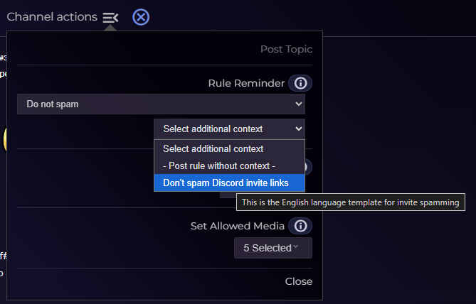 is selected instead of a rule, or if the rule requires additional context, the Bot will prompt for a free-format description to be posted along with the rule (and template) text.